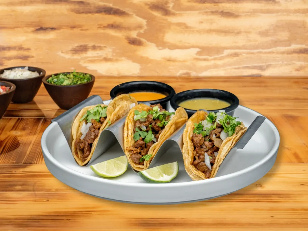 Soft yellow corn tortillas stuffed with your choice of meat, topped with onions and cilantro. Supreme style: add cheese, lettuce, pico de gallo and sour cream ($0.75 extra).